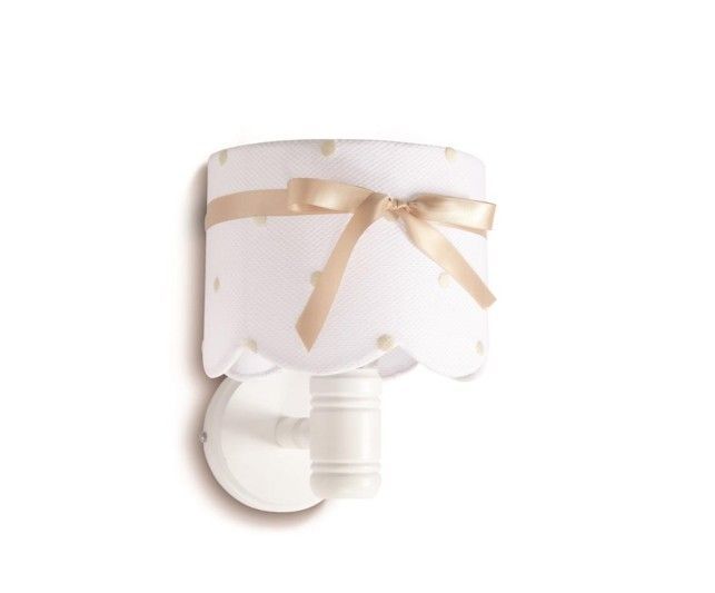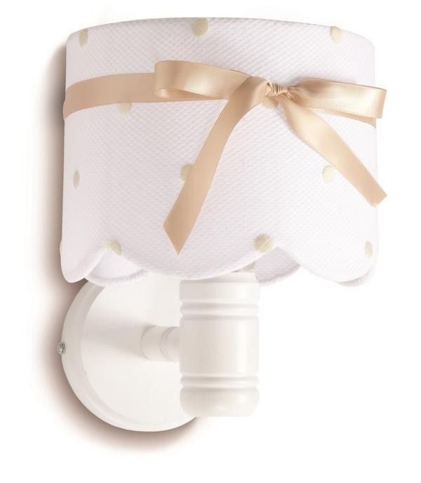 Aplique pared madera con pantalla de algodón con topos bordados y lazo del mismo tono del bordado a juego